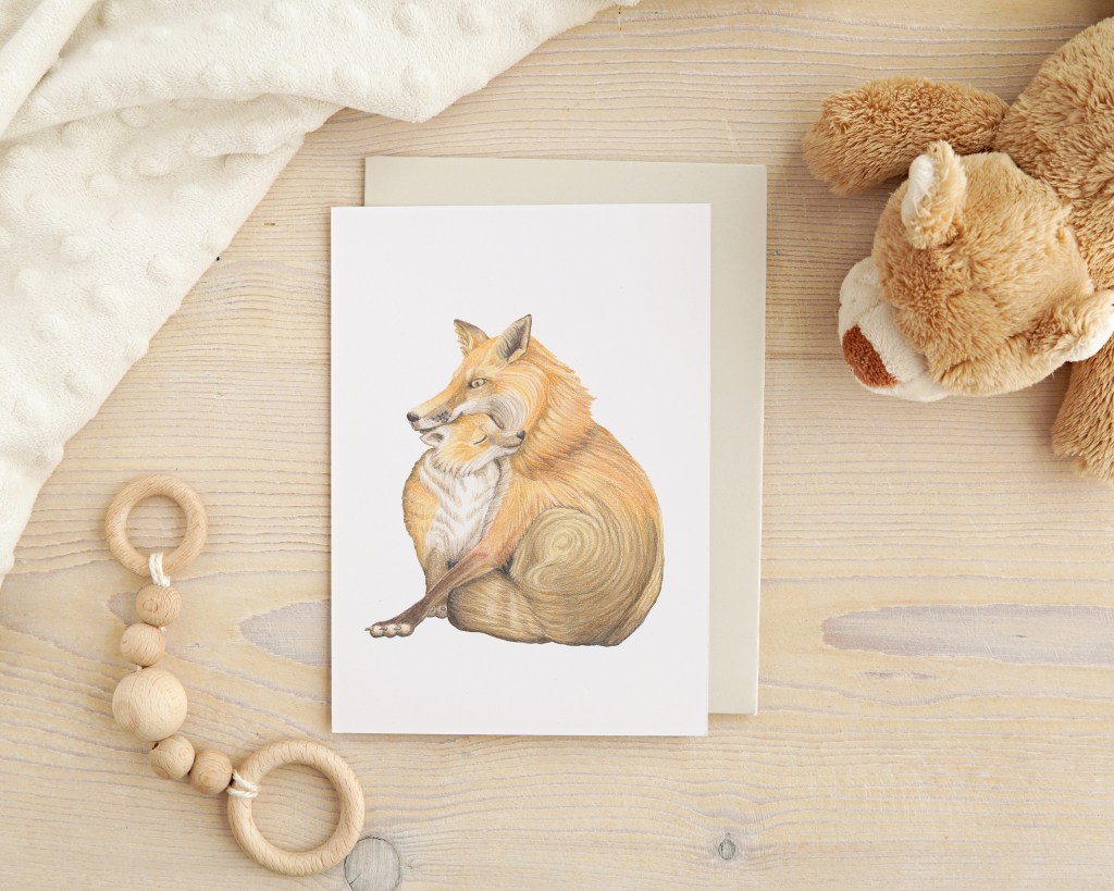 I have uploaded two products to my ETSY shop. First, is a pack of 10 baby shower thank you notes! Second is a Mother’s Day card! Both have the same colored pencil drawing of a mother and baby fox. I love how organic this image is, and how it captures the feelings of love and connection between the mother and baby. Visit my shop at: https://www.etsy.com/shop/EveCreativeArts